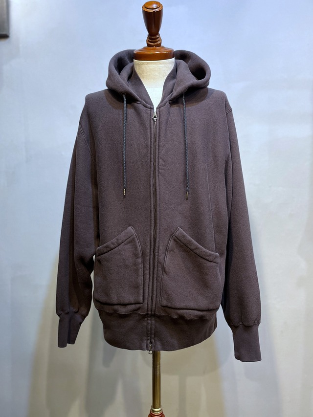 吊裏毛機を使用し表糸をスビンコットン100%、裏パイル糸をシルク100%の裏起毛ジップパーカーです。 スビンコットンの上品な光沢とシルクの軽量でふんわりとした暖かさが贅沢な着心地です。 カタチは、MA-1の襟リブの様な襟元の外側にフードを縫製してスポーティーになりすぎない様に工夫され大人が着やすいバランスに。 また袖は大きめのアームホールのドルマンスリーブデザインでナチュラルな落ち感が魅力的です。 フロントの分離ポケットは50〜60年代のヴィンテージ仕様 ラグジュアリーな生地に、古き良きディテールが溶け合った“唯一無二”のパーカーですよ☆