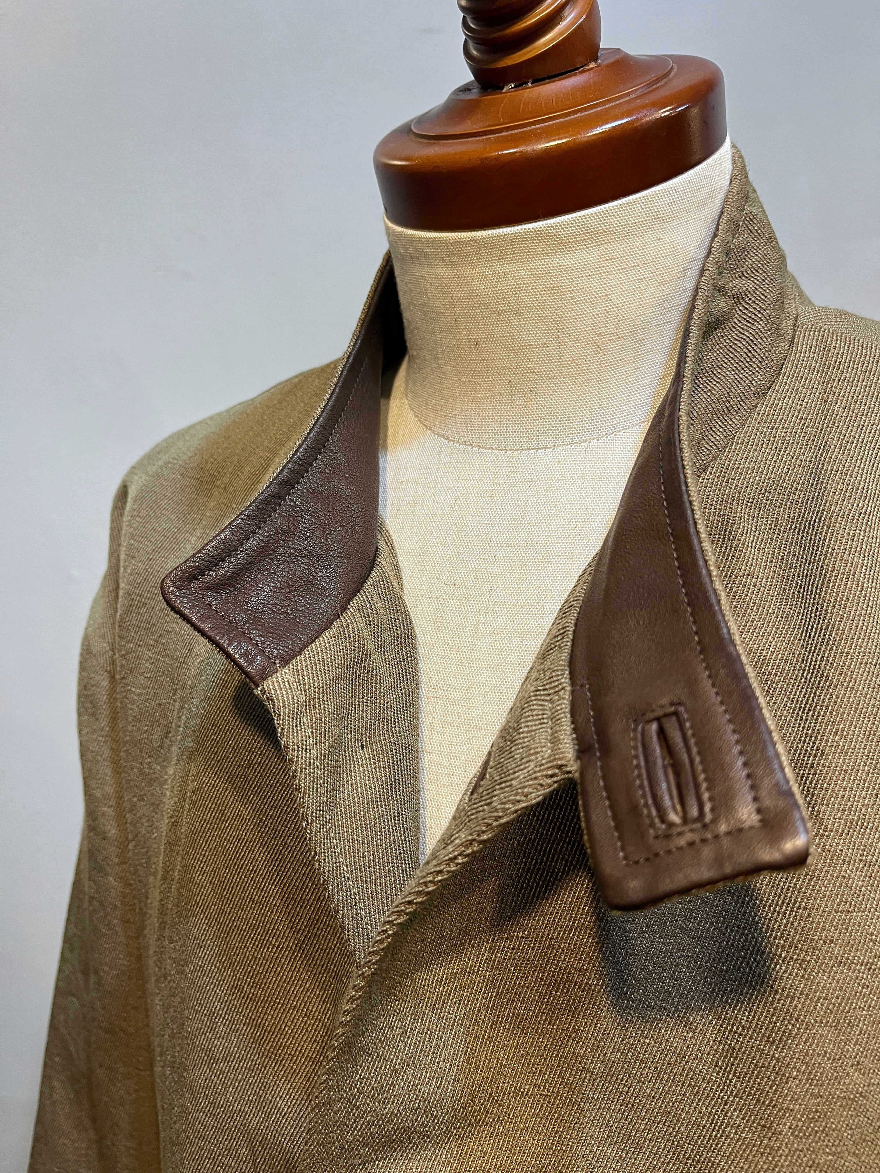 ポケット縁・エルボーパッチ・襟裏・ボタンホールにはレザーを配した贅沢な仕上げ。